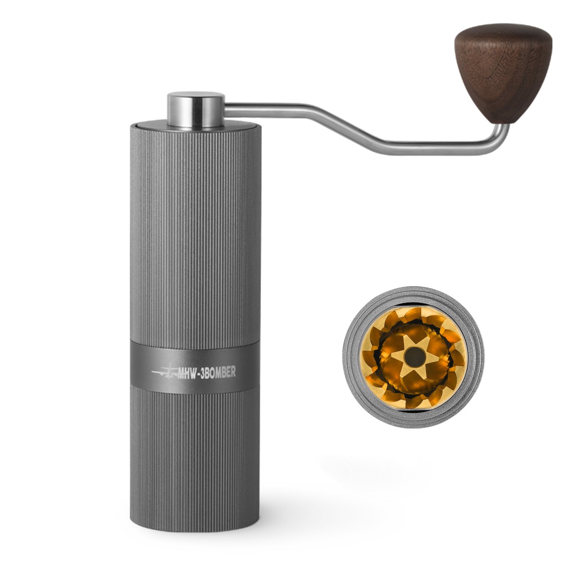 Ручная кофемолка Blade M1 (внутренняя регулировка) жернова 38мм с титановым покрытием-серая-с ореховой ручкой