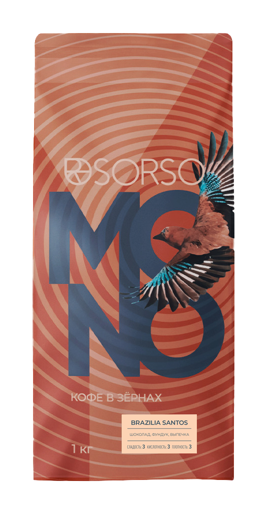 Кофе SORSO Brazilia Santos (темная обжарка) 1000 гр. (Рожковая бытовая)